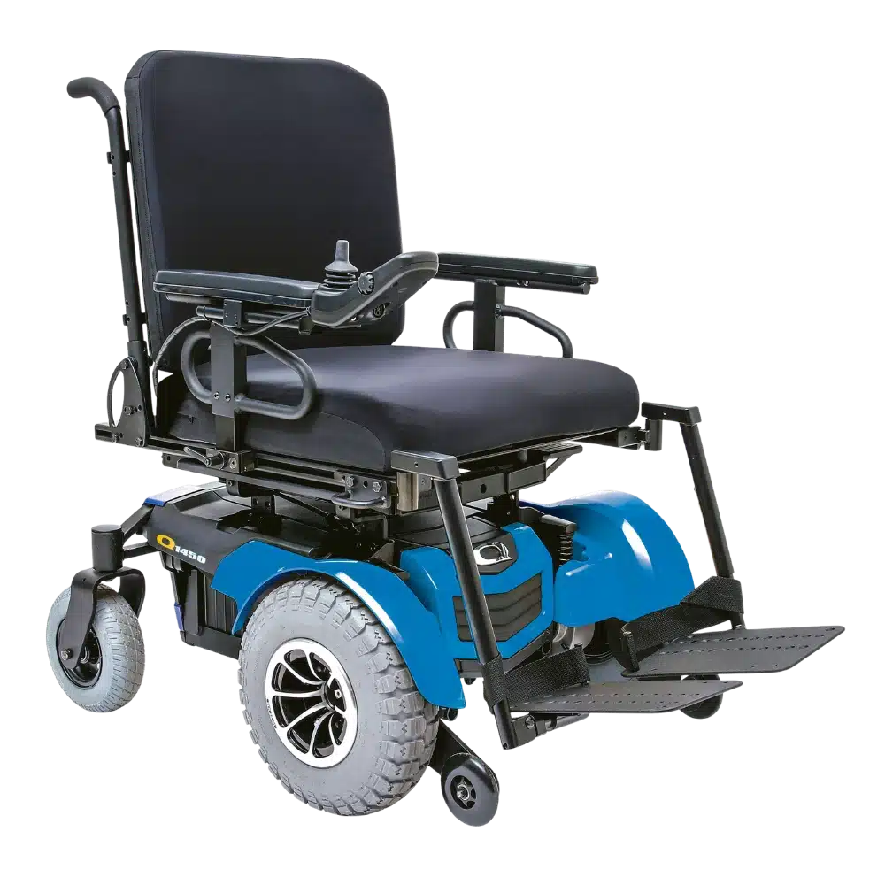 De Quantum 1450 is een voorwielaangedreven bariatrische rolstoel, ontworpen voor maximale stabiliteit, buitenprestaties en wendbaarheid in krappe ruimtes. Met een gewichtscapaciteit van 272 kg en high-performance motoren die snelheden tot 7,9 km/h leveren, overwint hij moeiteloos verschillende terreinen. Volledig compatibel met een breed scala aan zit- en elektronische opties, combineert de Q1450 kracht, veelzijdigheid en comfort voor intensief dagelijks gebruik.